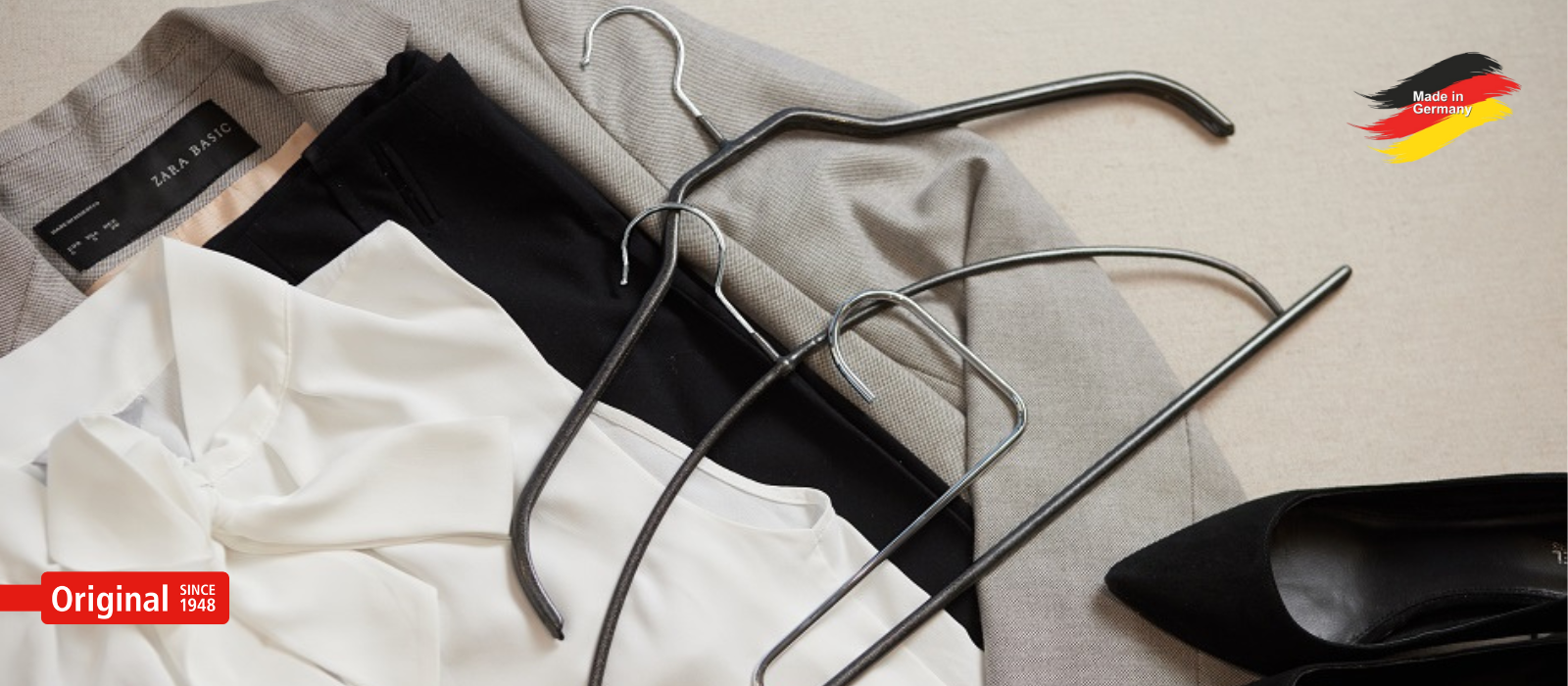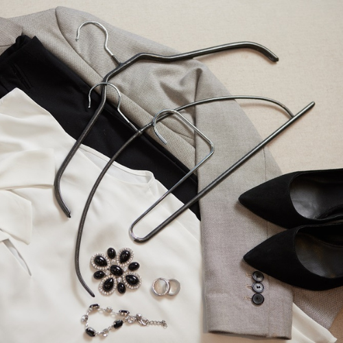 Unsere neuen Haken reichen von Silberchrom über Rauchchrom, matt oder glänzend, bis zu Haken aus einer Goldlegierung.Kombiniert mit Beschichtungen in Schwarz, Weiß, Glitzerrot, Glitzerschwarz oder Perlmutthaben wir eine neue Generation an Kleiderbügeln geschaffen. Von spektakulär bis innovatov - jedes Sortiment einzigartig mit dem gewissen Etwas.